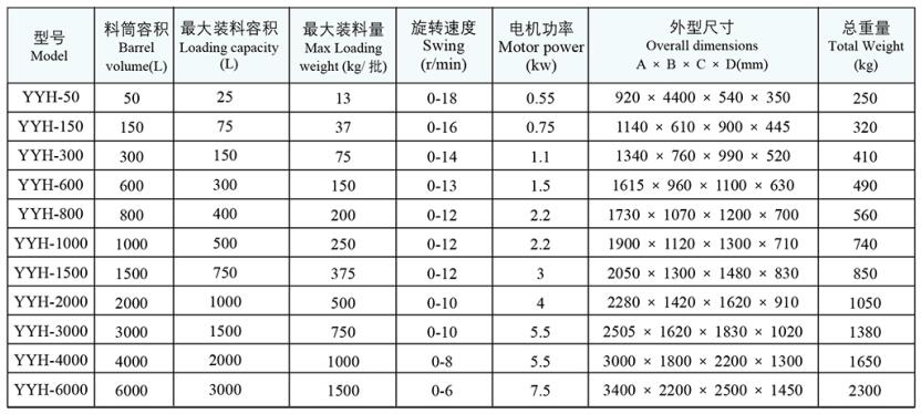 運轉時,裝料筒體繞中心軸做回轉運動(簡稱“一維運動”),而筒內物料作三維運動,姑物料的混合精度可與二維,三維運動混合機相媲美。